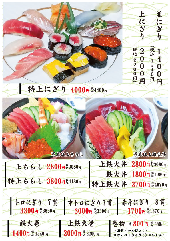 寿司・和食処 潤井戸八幡屋では、各種にぎり寿司や海鮮丼などいろいろ取り揃えています。